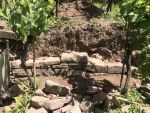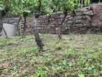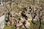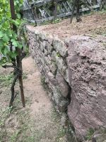 Nach vielen Stunden grauer Theorie rund um das Thema Trockenmauerbau, Fördermöglichkeiten durch die Stadt Ettlingen und praktischer Erfahrung aus dem Seminar „Sanierung von Weinbergtrockenmauern“ der LVG Heidelberg ging es im April 2017 dann an die Praxis. Zeitgleich hatte die Stadt Ettlingen ein Förderprogramm ins Leben gerufen, um die Sanierung von Trockenmauern zu unterstützen, um das ich mich beworben habe. Ausgestattet mit viel Enthusiasmus, dem geeigneten Werkzeug und mit der Erfahrung meines 4-tägigen Seminars machte ich mich ans Werk, den Schaden zu beheben. Zunächst war der Abbruch noch stehender Mauerteile nach Vorgaben der Stadt bis Mitte Mai vorzunehmen. Danach erfolgte über mehrere Wochen Schritt für Schritt der Wiederaufbau. Von einer Vorstellung musste ich mich dabei ganz rasch verabschieden: Jeden Stein in Quaderform zuzuhauen ist viel zu aufwändig und das vorhandene Steinmaterial bietet wenig plane und parallele Flächen. Als Konsequenz wurden die Steine zwar auf Maß gehauen, aber nicht in rechteckige Form. Im Vergleich mit bestehenden Mauern am Robberg scheint dies allerdings ein akzeptabler Kompromiß zu sein.