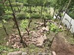 Die Saison 2017 am Robberg begann wenig einladend. Zwei Mauern waren über den Winter herunter gebrochen. Eine im unteren Bereich, eine weitere im oberen Bereich Richtung Wald. Während die untere Mauer in gerader Front leicht zugänglich war, handelt es sich bei der zweiten Mauer um eine Ecke, die sich an der Treppe entlang zieht und schwerer zugänglich ist.